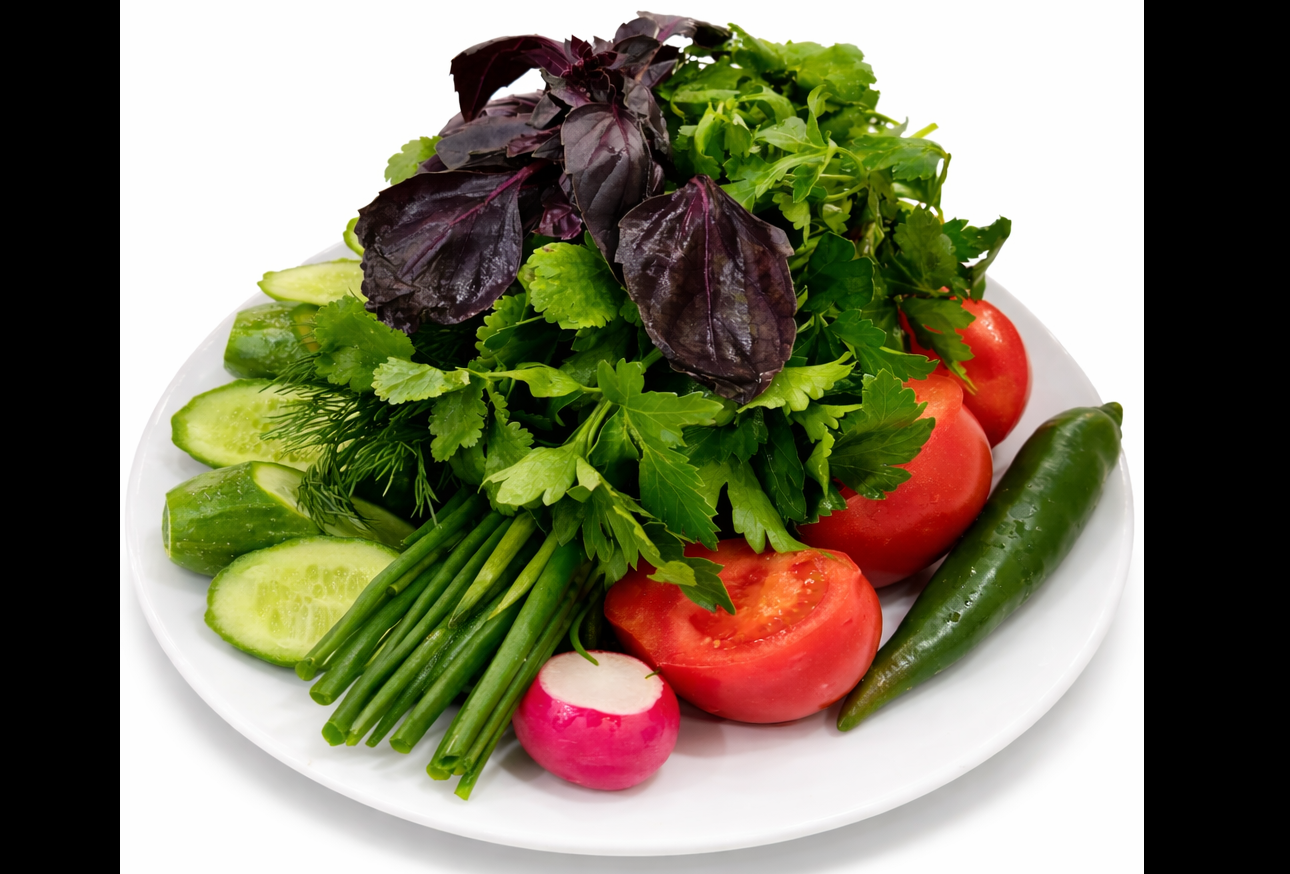 (Помидоры Баклажаны Перец острый Перец Болгарский Базилик)