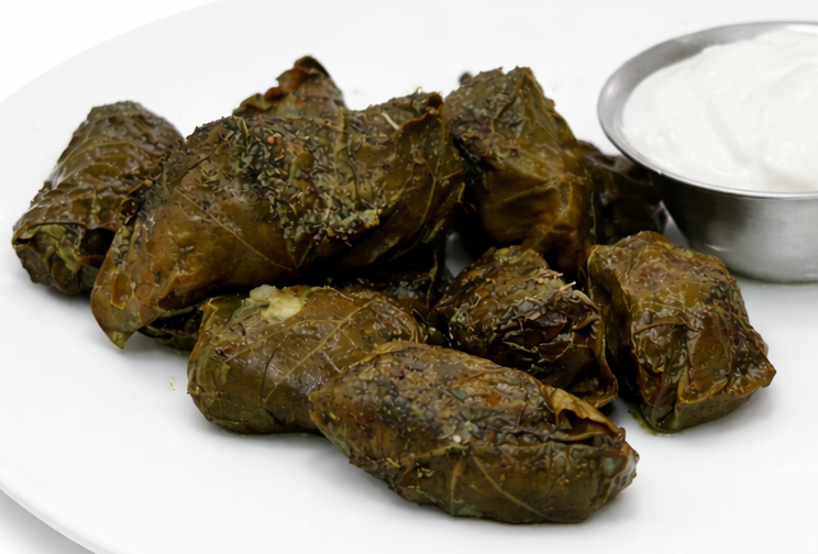 Традиционное восточное блюдо, где мясной фарш с рисом и специями заворачивают в молодые виноградные листья.