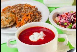 Среда: суп с фрикадельками, винегрет, жаркое по-деревенски.
